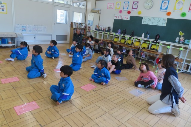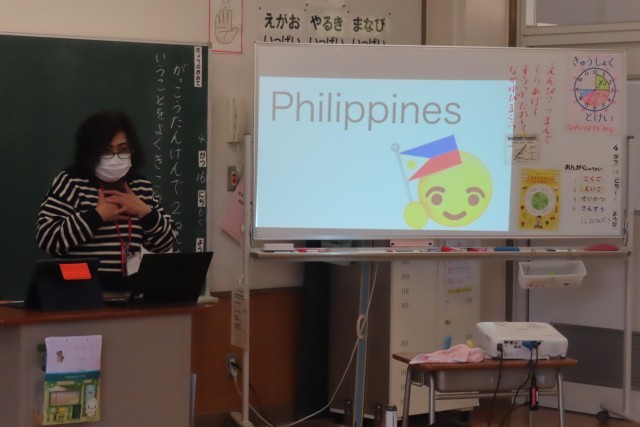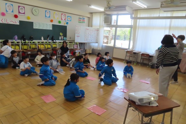 特に1年生にとっては初めてのALTの先生との英語です。昨年度も一緒に英語を楽しく話してくれた先生なので2年生はよく知っています。驚いたのは、17文字もの長ーい名前(long nameだよ!)を正確に覚えていたことです。みんなALTの先生が大好きだからです。教室ではALTの先生の英語での自己紹介を聞きました。「すきなたべものが わたしとおんなじ!」一つ一つの紹介を大切に聞きました。日本語訳なんて必要ありません。