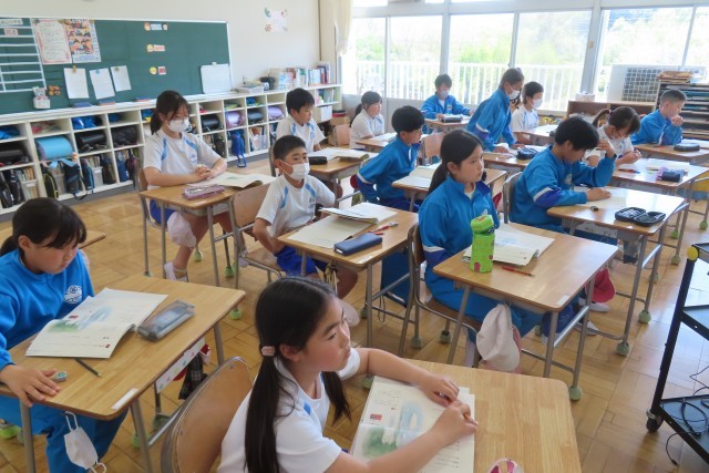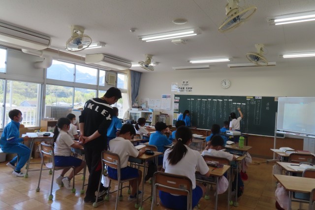 「準備」この作品は詩です。多くの学年で1年間の国語を「詩」からスタートさせていますが、6年生の詩の読み取りは特に深いです。自分の生き方や考え方ともつなげて読み取り、大切なメッセージとなっています。教室でははじめて読んでみた後の感想を伝え合っていました。加えてどうしてそう考えたのか?根拠となる詩の表現を抜き出して自分の言葉で説明していました。友達の考えにしっかり耳を傾け、そこから学び取ろうとしている「学びいっぱい」の学級の空気も感じました。