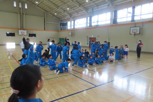 続いてお楽しみ「じゃんけん大会」今日は教頭先生、教務主任の先生との対決でした。子供たちは(小学生は?)じゃんけんが大好きです!いつもじゃんけんで盛り上がります。あっという間の短い時間のお楽しみでしたが、「笑顔いっぱい」大盛り上がりでした。