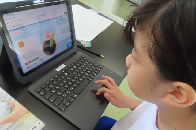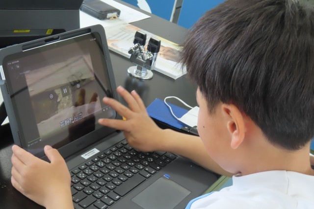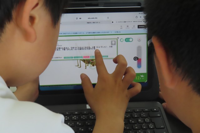 「あたたかくなると」の学習中です。「ここでは」身近な動物や植物の成長の変化と季節、気温などの環境との関わりについて観察等を通して知ります。4年生は動物や植物が大好きです。なのでもっともっと好きになります。今日は、タブレット上で調べ学習をしていました。調べてみて分かったことがたくさんあって夢中でした。「ねえねえ、電子顕微鏡で見られるのがあるよ!」いい情報はすぐに友達に伝えてあげます。