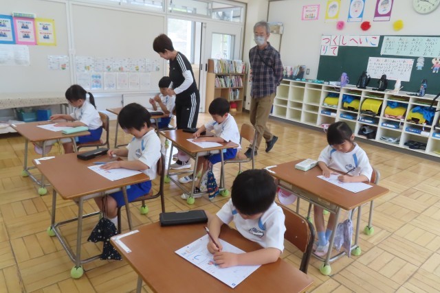 今日のひらがなは「う」まず最初に「う」のつく言葉を見付けました。なんと!新記録の55個!でもその後「う」がみんな上手に書けて、先生から○をもらって「ありがとう!」と言う1年生が気付きました。「56こめ!」いつも感心しますが「ありがとう」という言葉が出せる心の美しい子たち。56個目の「う」は絶対に忘れません。