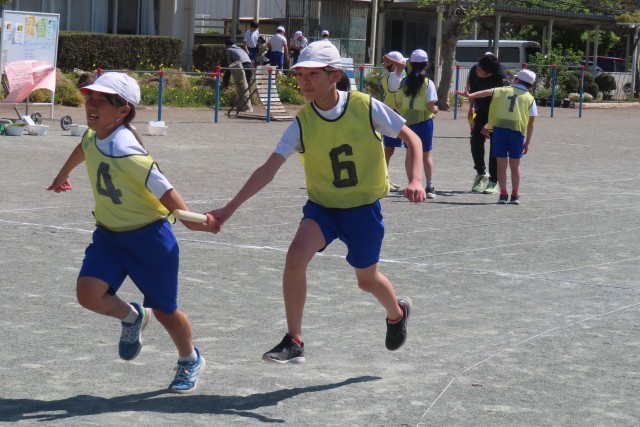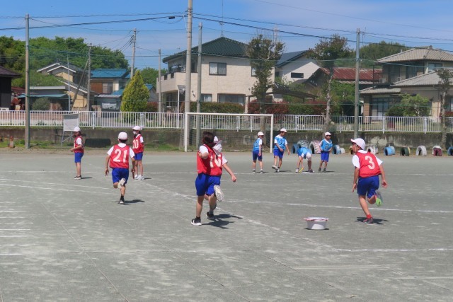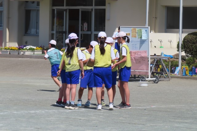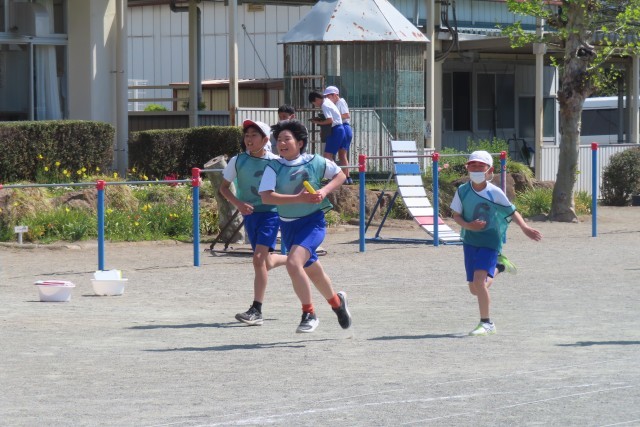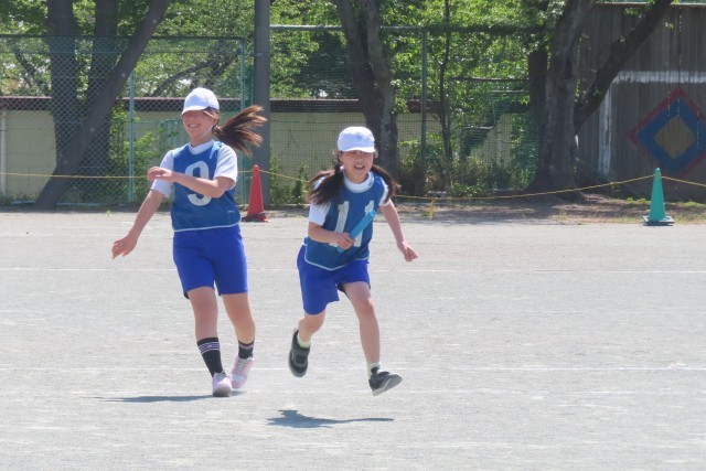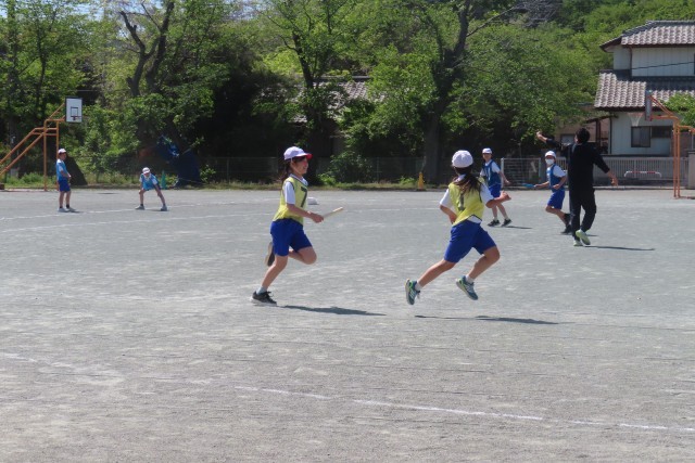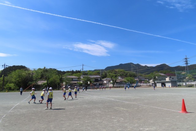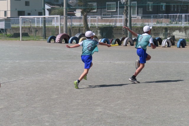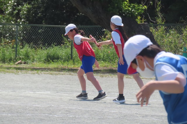 陸上のリレー。5・6年生の「やる気いっぱい」学ぶ姿勢は100点満点です。どうしたらバトンパスがうまくいくのか?チームごとに自分たちで頭を悩ませ、声をかけあって、練習方法を考えて・・・1時間の学習すべてが「自分たちのもの」になっていて100点満点です。「学びいっぱい」の姿というのはこういうことを言うんだなとあらためて感じる素晴らしい授業でした。