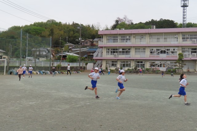 自分に挑戦タイムの「3分間マラソン」今朝も元気にがんばりました。久しぶりの走りなので、ちょっとつかれたな、苦しいな・・・。でもそこを踏ん張ってあきらめないで自分の気持ちよいペースを見付けようと頑張り抜くのが、美九里西小の児童のいいところ!伸びる秘訣!