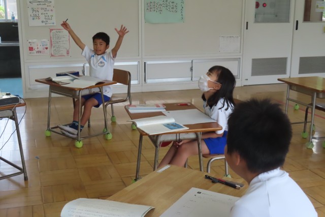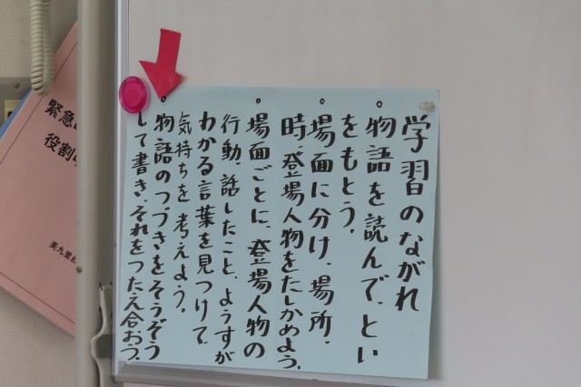 「春風をたどって」さあ!よかったね!お待ちかね!今日は物語の続きを想像して伝え合う活動に入りました。「やる気いっぱい」です。ルウはどんな気持ちになっているのかな?この先ルウはどうやってくらしていくのかな?想像するのが楽しい様子です。まずは、登場人物はどうするか?ルウはどんな景色に出会うのか?どんな出来事が起こるのか?といったポイントについてメモを書いていました。