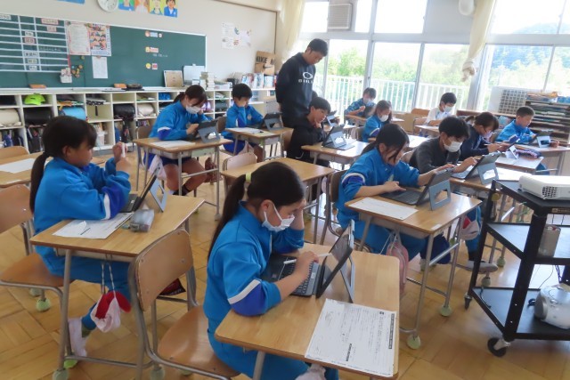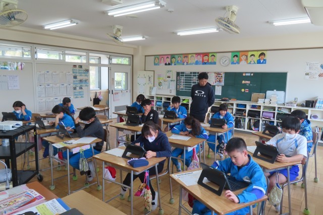 先日23日(木)は全国の小6が一斉に国語と算数の調査を受けました。この質問調査は、本校では指定された日である今日行いました。タブレット上での回答となっていますが、6年生は慣れた手つきでスムーズに回答を進めていました。先日もお伝えしましたが、このあとの結果をしっかり分析して子供たちのよりよい今、そして将来のために生かしていきます。