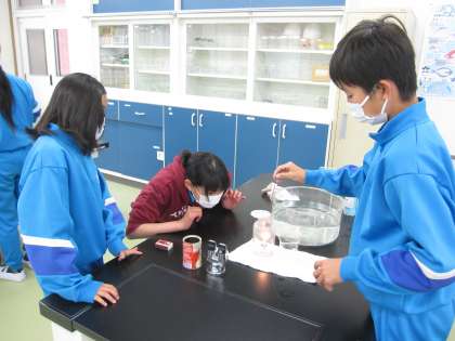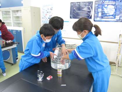 4月15日(金)6年理科 ものの燃え方(その1) 公開日 2022/04/15 更新日 2022/04/15 できごと ちっ素、酸素、二酸化炭素のそれぞれの気体の中でのろうそくのようすを比べながら調べました。 酸素には、ものを燃やすはたらきがあり、ちっ素や二酸化炭素には、ものを燃やすはたらきはないことがわかりました。