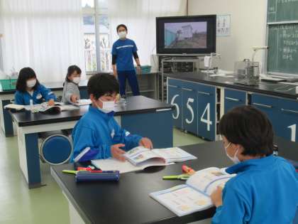 4月15日(金) 4年生の理科 公開日 2022/04/16 更新日 2022/04/16 できごと 今年度、4〜6年生の理科は、東連携型小中一貫校の小小連携として、美九里東小学校の理科専科の先生(兼務教員)にお世話になります。 (写真上)板書には、青囲みで本時のめあてが示され、板書を見ると学習の内容がよくわかります。 (写真中・下)動画を見て学んだことを教科書で確認しています。