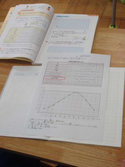 4月18日(月) 4年生の算数 公開日 2022/04/18 更新日 2022/04/18 できごと 3校時、4年生の算数の様子です。今日のめあては、「折れ線グラフの書き方を知ろう」です。先生の説明を聞き、個々に折れ線グラフを書いてみました。
