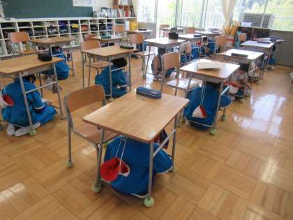 4月19日(火) 地震時の行動 公開日 2022/04/19 更新日 2022/04/19 できごと 8時16分頃、地震が起こりました。朝読書の時間です。ちょうど2階から3階へと校舎内を見回っているときに地震が起こりました。3階教室では、子供たちが担任の先生の指示のもと、静かに机の下にもぐり身を守っていました。避難訓練の成果があらわれた行動でした。 (写真は上から順に)6年生、5年生、4年生の様子です。