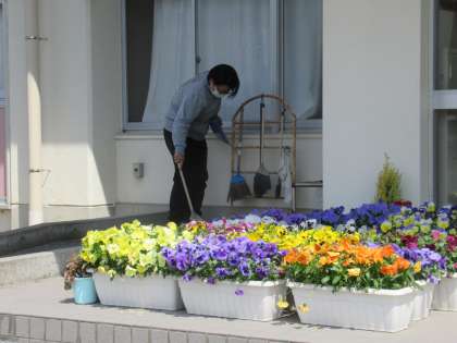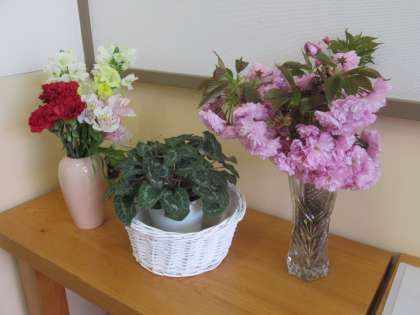4月19日(火) 玄関の花々 公開日 2022/04/19 更新日 2022/04/19 できごと 来校者や児童を迎える玄関には、地域の方にいただいた八重桜など季節の花々が飾られています。業務員さんの心づかいです。