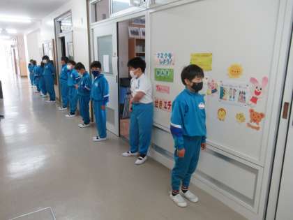 (写真下)どの学年の子供たちも、静かに整列して順番を待つことができました。