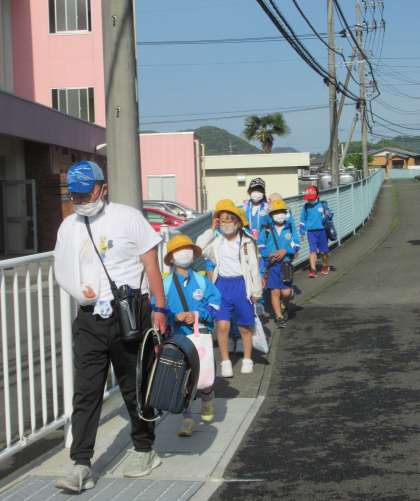 4月25日(月) 元気に「おはようございます!」 公開日 2022/04/25 更新日 2022/04/25 できごと 4月最終週の月曜日、子供たちが元気に登校してきました。今日も、元気に「おはようございます!」のあいさつでスタートしました。 (写真下)本校卒業生の東中1年生も、いつも「おはようございます!」と元気にあいさつをしてくれます。「いってらっしゃい!」