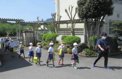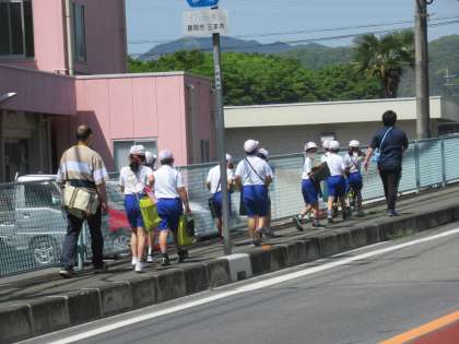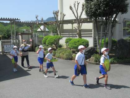 4月25日(月) 3年生の社会 公開日 2022/04/25 更新日 2022/04/25 できごと 3校時、3年生は社会科の学習で「町たんけん」に出かけました。今日は、藤岡総合運動公園陸上競技場周辺のたんけんです。「いってらっしゃい!」