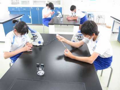 5月11日(水)6年理科 植物の成長と日光の関わり(その5) 公開日 2022/05/11 更新日 2022/05/11 できごと デンプン粒もヨウ素液で青紫色に染まりました。 葉にできたデンプンは、成長のための養分として使われるほか、実や種子、いもなどにたくわえられることがわかりました。