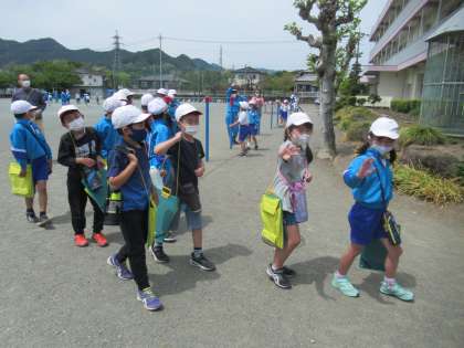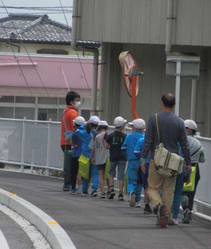 5月11日(水) 3年生の社会 公開日 2022/05/11 更新日 2022/05/11 できごと 3・4校時、3年生は社会科の学習で、2回目の「町たんけん」に出かけました。今日の目的地は、保美公会堂です。気を付けて「いってらっしゃい!」