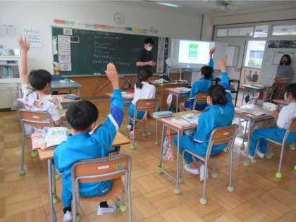 5月12日(木) 6年英語 公開日 2022/05/12 更新日 2022/05/12 できごと 6年生の英語の授業では、世界のあいさつについて学習しているところでした。 藤岡第一小から来てくださっている先生と、ALTの先生との授業でした。 6年生の児童たちは、先生からの質問に積極的に挙手をし、発言していました。6時間目でもしっかり頑張っていました。