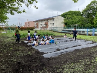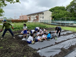 5月13日(金) 2年生 生活科 公開日 2022/05/13 更新日 2022/05/13 できごと 学校の畑では、2年生が野菜の苗や種を植えていました。業務員さんにお手伝いをしてもらいながら一生懸命植えていました。 「何の苗を植えたの?」と聞くと、「さて、何でしょう〜?」と逆に問題を出されてしまいましたが、その後に答えを教えてくれました。 茄子やトウモロコシ、パプリカなどを植えたのだそうです。しっかりお世話をして、収穫を楽しみにしたいですね。