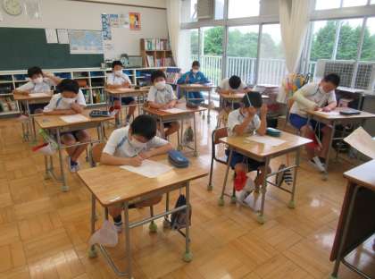 6校時、5年生は体育の時間に「全国体力・運動能力、運動習慣等調査」の質問紙調査に回答していました。この調査は、スポーツ庁が全国の小学5年生、中学2年生を対称に実施し、子どもの体力の状況を把握・分析することにより、子どもの体力の向上に係る施策の成果と課題を検証し、その改善を図ることを目的としています。