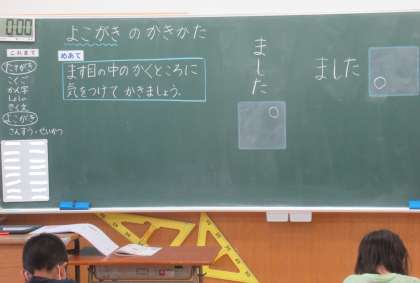 5月17日(火) 2年生の書写 公開日 2022/05/17 更新日 2022/05/17 できごと 5校時、2年生の書写では、「よこ書き」の練習をしていました。これまで練習してきた「たて書き」と比べて、句読点などマス目の中の書くところに気を付けて練習していました(今日のめあて)。