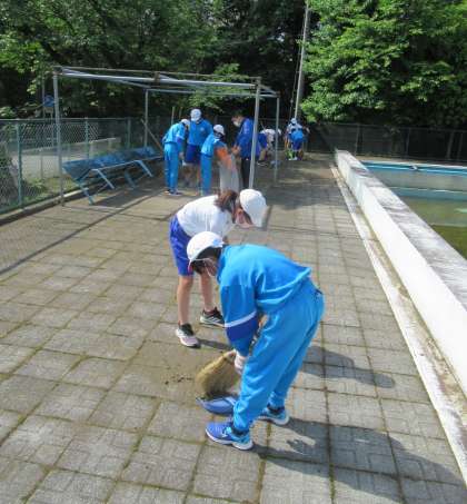 5月18日(水) プールサイドの除草(3) 公開日 2022/05/18 更新日 2022/05/18 できごと 最後に、体育委員と6年生が、プールサイドを掃いて、取った草を片付けてきれいにしてくれました。