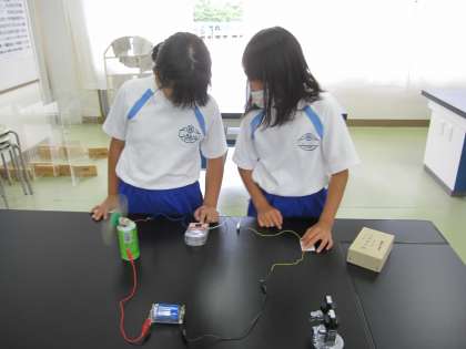 かん電池の向きを変えると、電流の向きも変わることがわかりました。