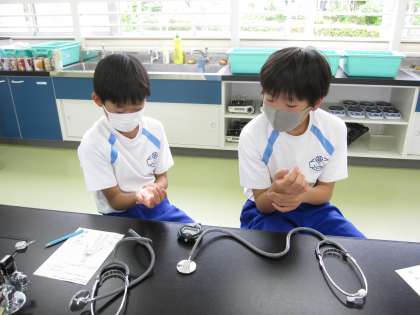 6月1日(水)6年理科 体のつくりとはたらき(その2) 公開日 2022/06/02 更新日 2022/06/02 できごと 1分間のはく動数と脈はく数が同じことから、血液は心臓のはく動によって全身の血管を流れていくことがわかりました。
