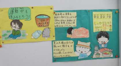 (写真下)熱中症予防に向けての掲示物です。