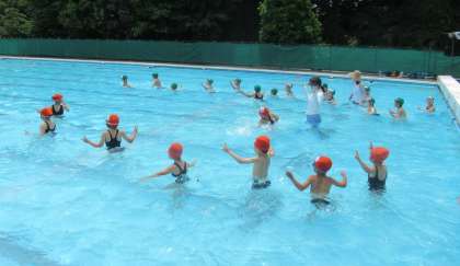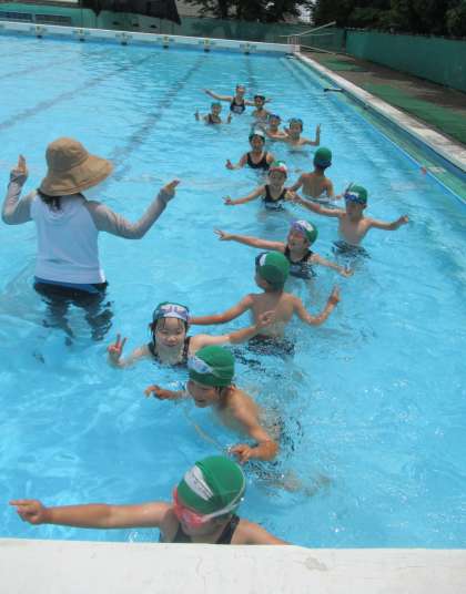 6月3日(金) 1・2年生のプール(2) 公開日 2022/06/04 更新日 2022/06/04 できごと (写真上・中)水に慣れるために、プールの中で歩いたり、ジャンプしたり、ウサギになったりして楽しみました。写真は、カニ歩きの様子です。プールの中に、笑顔のカニがいっぱいになりました。 (写真下)先生の太鼓の音に合わせて、歩いたり、小走りしたり、止まったりしてプールの中をたくさん歩きました。そのあと、プールの中で鬼ごっこもして楽しみました。