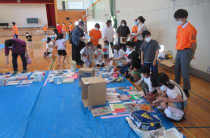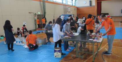 6月4日(土) PTAバザー(3) 公開日 2022/06/04 更新日 2022/06/04 できごと 10時〜11時半、PTAバザーを開催しました。天気にも恵まれ、総勢180名の皆様に来場いただき、大盛況となりました。 (写真上)「5個で百円」の生活雑貨(家庭用品)のコーナーが子供たちに人気でした。おこづかいで買い物実践です。 (写真中)食料品・野菜コーナーは、保護者や地域の方々でにぎわいました。 (写真下)休憩コーナーにある「輪投げ」に夢中です。