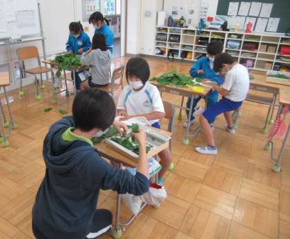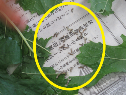 6月6日(月) 4年生のカイコ日記 公開日 2022/06/06 更新日 2022/06/06 できごと 4年生は「高山社学」でカイコを育てています。雨降りの今日も、傘をさして長靴をはいて、4年生みんなで桑の葉を採ってきました。教室に戻ると、桑の葉を1枚1枚ていねいにふいて水気をとって、新鮮な桑の葉をカイコに与えていました。4年生の愛情で、カイコがすくすく育っています。