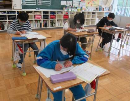 6月6日(月) 6年生の算数 公開日 2022/06/06 更新日 2022/06/06 できごと 5校時、6年生の算数では、これまでに学習したことのふり返りとして、教科書の後ろのたしかめ問題やプリントの問題に取り組んでいました。問題を解けば解くほど、力が付きます。