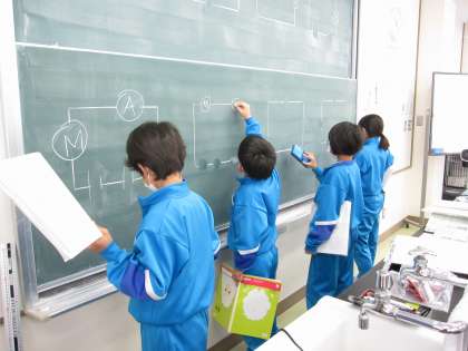 記号を使って回路を表す学習をしました。理解が早く、いろいろな回路図をかけるようになりました。