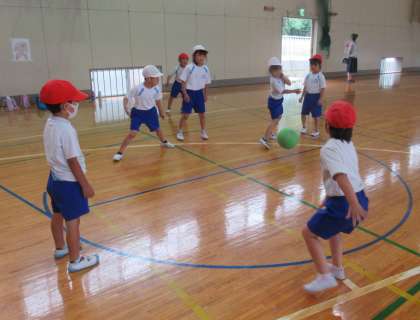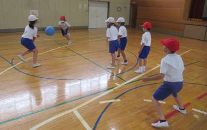 6月8日(水) 1・2年生の体育(1) 公開日 2022/06/08 更新日 2022/06/08 できごと 3校時、1・2年生の体育では、ボール運動「中当て」に取り組んでいました。4つのグループに分かれてゲームをしています。