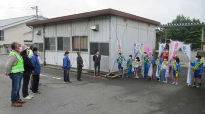6月9日(木) 東連携型小中一貫校「地域でふれあうあいさつ運動」4日目(2) 公開日 2022/06/09 更新日 2022/06/09 できごと (写真上)こうして地域の皆様に支えられて、あいさつができる子供たちが育っています。 (写真中)校庭から登校してくる保美の子供たちも、地域の方々に元気に手を振って「おはようございます!」のあいさつを交わしました。 (写真下)あいさつ運動4日目が終わり、子供たちみんなで地域の皆様にお礼のあいさつをしました。