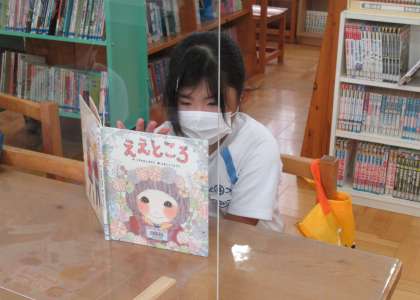 (写真下)校長が、人権集会の時に読み聞かせをした絵本「ええところ」を早速手に取って読んでくれていました。