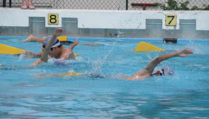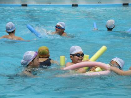 6月20日(月) 5・6年生のプール(2) 公開日 2022/06/20 更新日 2022/06/20 できごと (写真上・中)ビート板を足に挟んで、クロールのストローク(腕かき)の練習をしました。 (写真下)最後の自由時間です。みんなとっても楽しそうです。