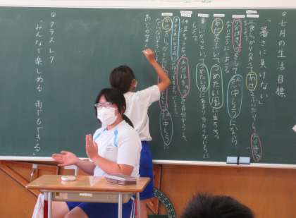 6月20日(月) 6年生の学級活動 公開日 2022/06/20 更新日 2022/06/20 できごと 6校時、6年生の学級活動では、7月の生活目標「暑さにまけない」について、具体的な取組方法を話し合っていました。全員が意見を出し合い、クラスの取組へとまとめていました。