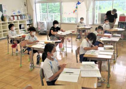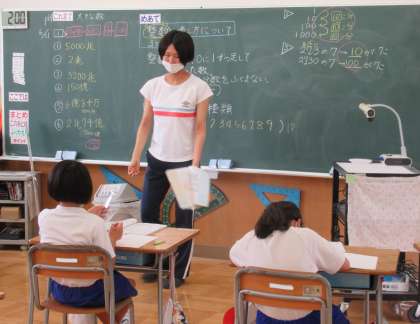 6月21日(火) 4年生の算数 公開日 2022/06/21 更新日 2022/06/21 できごと 1校時、4年生の算数では、「おおきな数」の学習で、めあて「整数の表し方についてまとめよう」の学習に取り組んでいました。 (写真中)今日から各学年の算数の時間に、支援員の先生も入り、担任と一緒に子供たちをサポートします。 (写真下)算数なのに国語辞典? 子供たちの机上には、主体的な学びをサポートするために(わからない言葉を調べる)、国語辞典が置かれています。