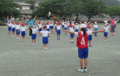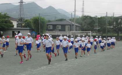 6月22日(水) 体育集会(1) 公開日 2022/06/22 更新日 2022/06/22 できごと 業前活動の時間に、体育集会を行いました。5月の体育集会の時に練習した集団行動(体操の隊形〜ラジオ体操)を通して行いました。 (写真上)体育委員長の「体操の隊形に開け」の号令で、1年生を基準に「1・2・3!」のかけ声で体操の隊形に開きます。 (写真中)ラジオ体操の様子です。左から6年生、3年生です。 (写真下)左から1年生、2年生です。