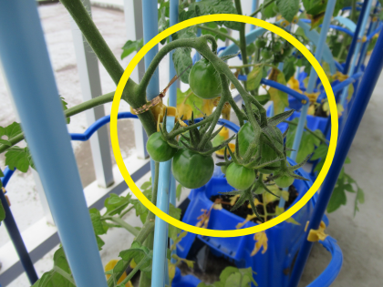 (写真中)一昨日、学級園でキュウリを初収穫した2年生が、教室のベランダで世話をしているミニトマトにも実がつきました。緑色からだんだん赤くなっていくのが楽しみです。