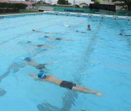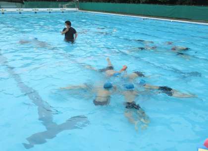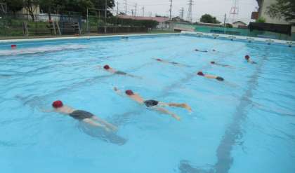 6月22日(水) 3・4年生のプール(2) 公開日 2022/06/22 更新日 2022/06/22 できごと (写真上)グループになって、大の字で伏し浮きの練習です。手をつないで、「せーの」とタイミングを合わせて、5秒がんばりました。 (写真中・下)けのびの練習をしました。水色帽子が3年生、赤色帽子が4年生です。プールの横幅を、3年生は6回で、4年生は4〜5回で進むのが目標です。