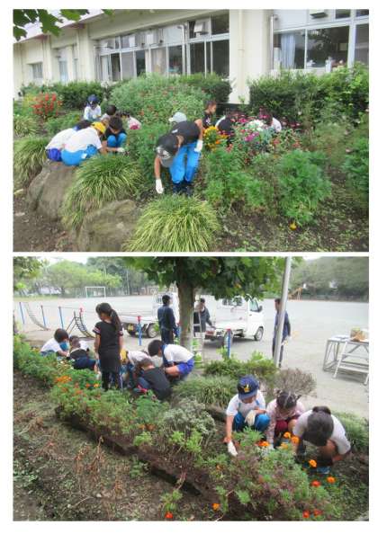 9月4日(日) PTA環境整備作業(6) 1・2年生 公開日 2022/09/04 更新日 2022/09/04 できごと 子供たちも頑張りました。 (写真上・中)1・2年生は、教室前の花壇をきれいにしました。たくさん草がとれました。 (写真下)教室から体育館への通路もきれいにしてくれました。