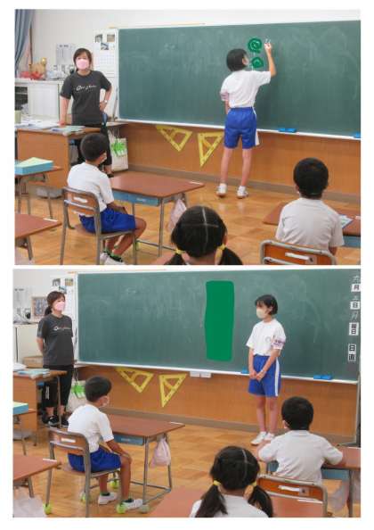 (写真中2枚)さっそく朝の会からスタートしました。各担当教室に行って、小学生とご対面です。主に6年生、4年生を担当します。