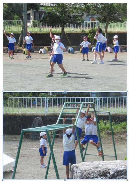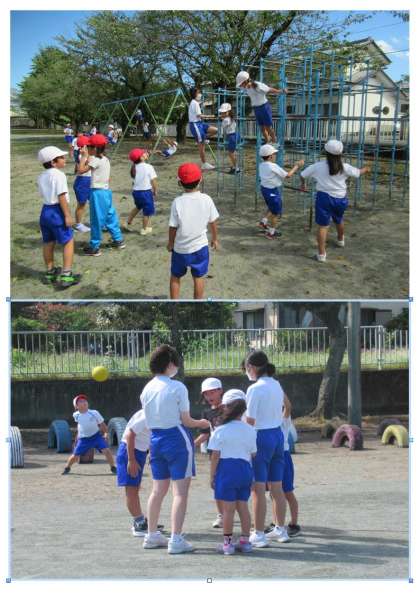(写真下2枚)久しぶりの青空のもと、子供たちは思い思いの場所で、楽しそうに遊んでいました。