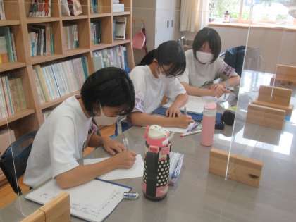 チャレンジウィーク2日目の東中2年生3名は、1〜5校時は、それぞれの担当学年教室で小学生の学習サポートを行いました。そして6校時は、3人が会議室に集まって、チャレンジウィーク最終日に6年生に向けて発表してくれる「東中の学校生活について」の準備をしていました。発表が楽しみです。