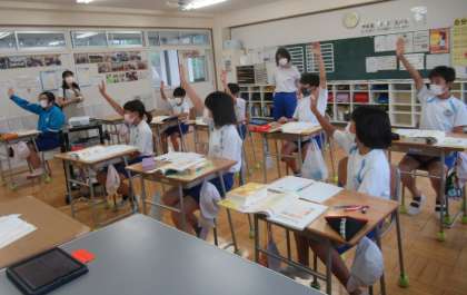 4校時、6年生の国語では、「利用案内を読もう」の学習で、めあて「目的に応じて、どの情報を活用したらよいか」について考えていました。自分の考えを発表する場面では、全員が挙手をしていました。さすが6年生です。