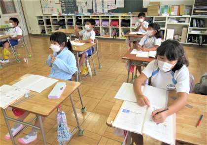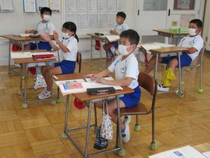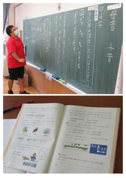 5校時、3年生の国語では、めあて「ローマ字のきまりをおぼえよう」の学習に取り組んでいました。これまで学習した母音や子音に加え、ここでは「きゃ、きゅ、きょのような音の書き方」「のばす音の書き方」「はねる音『(小さい)っ』の書き方」について学んでいました。