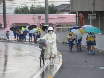 本降りの雨の中、子供たちは長靴をはいて傘をさして登校してきました。「靴下がぬれちゃった」という子供も、「でも替えの靴下をもってきたから大丈夫」と元気に話してくれました。雨天時の保護者の皆様の配慮に感謝いたします。