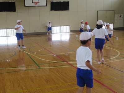 本日の3校時、体育館では1,2,3年生合同で体育の授業が行われていました。