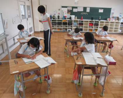 9月13日(火) 4年生の算数 公開日 2022/09/13 更新日 2022/09/13 できごと 4校時、4年生の算数では、がい数について学習していました。四捨五入の仕方を学び、個々に教科書の問題に取り組みました。